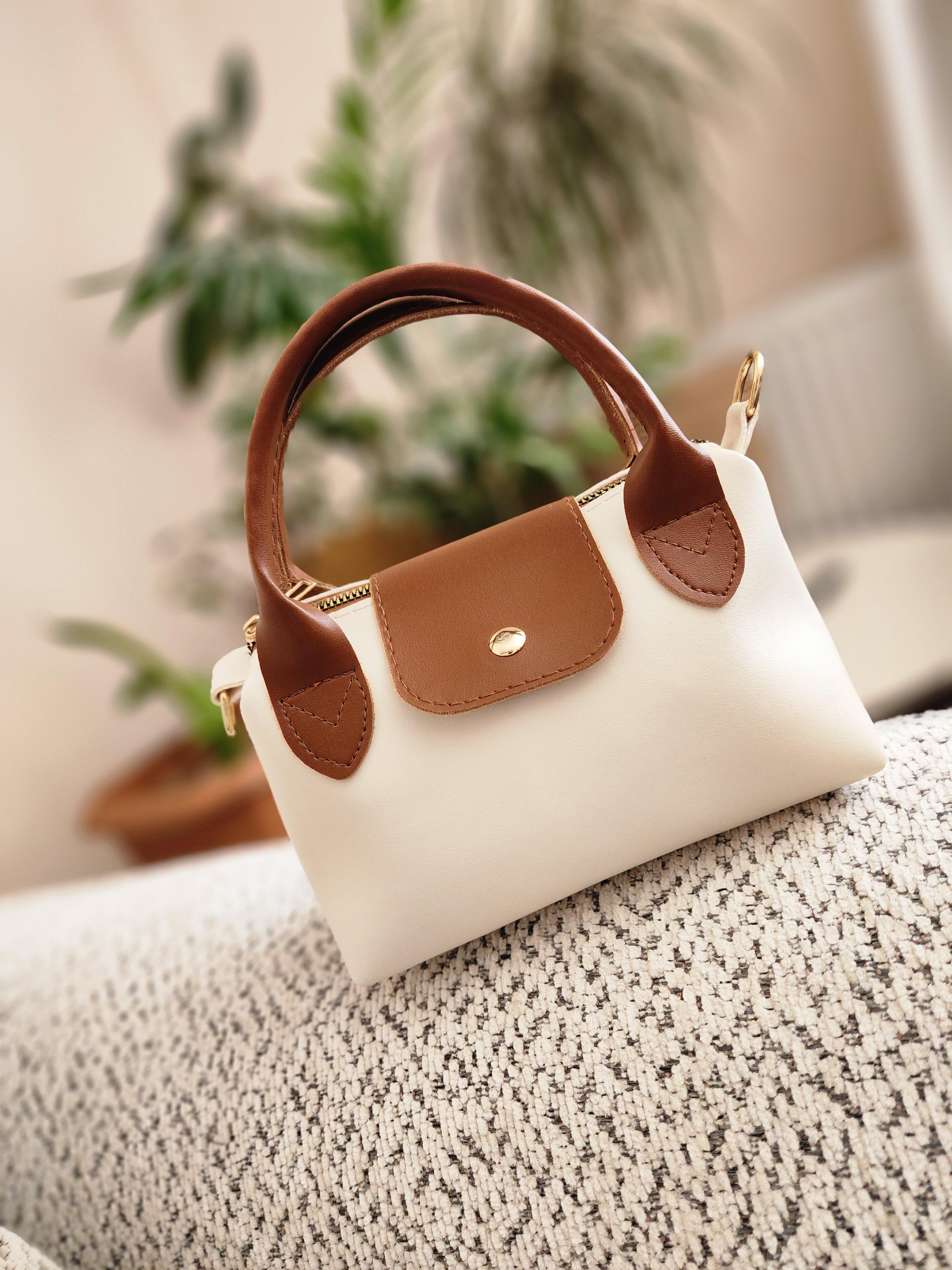 Deri askılı çanta ekru
