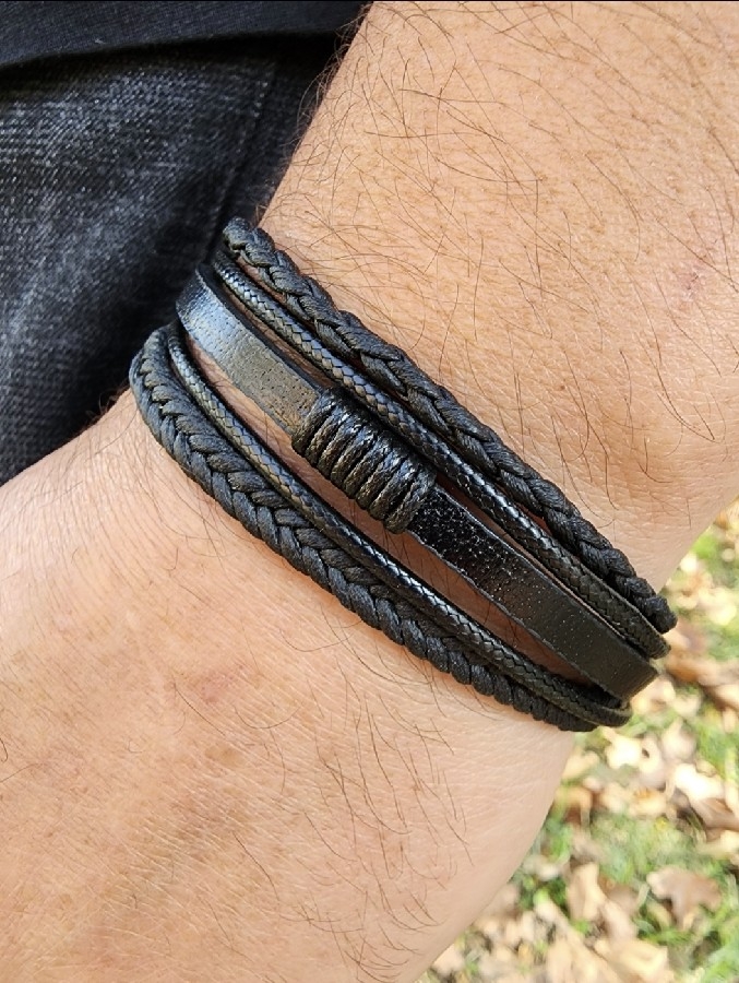 Deri Mıknatıslı Tasarım Bileklik Siyah