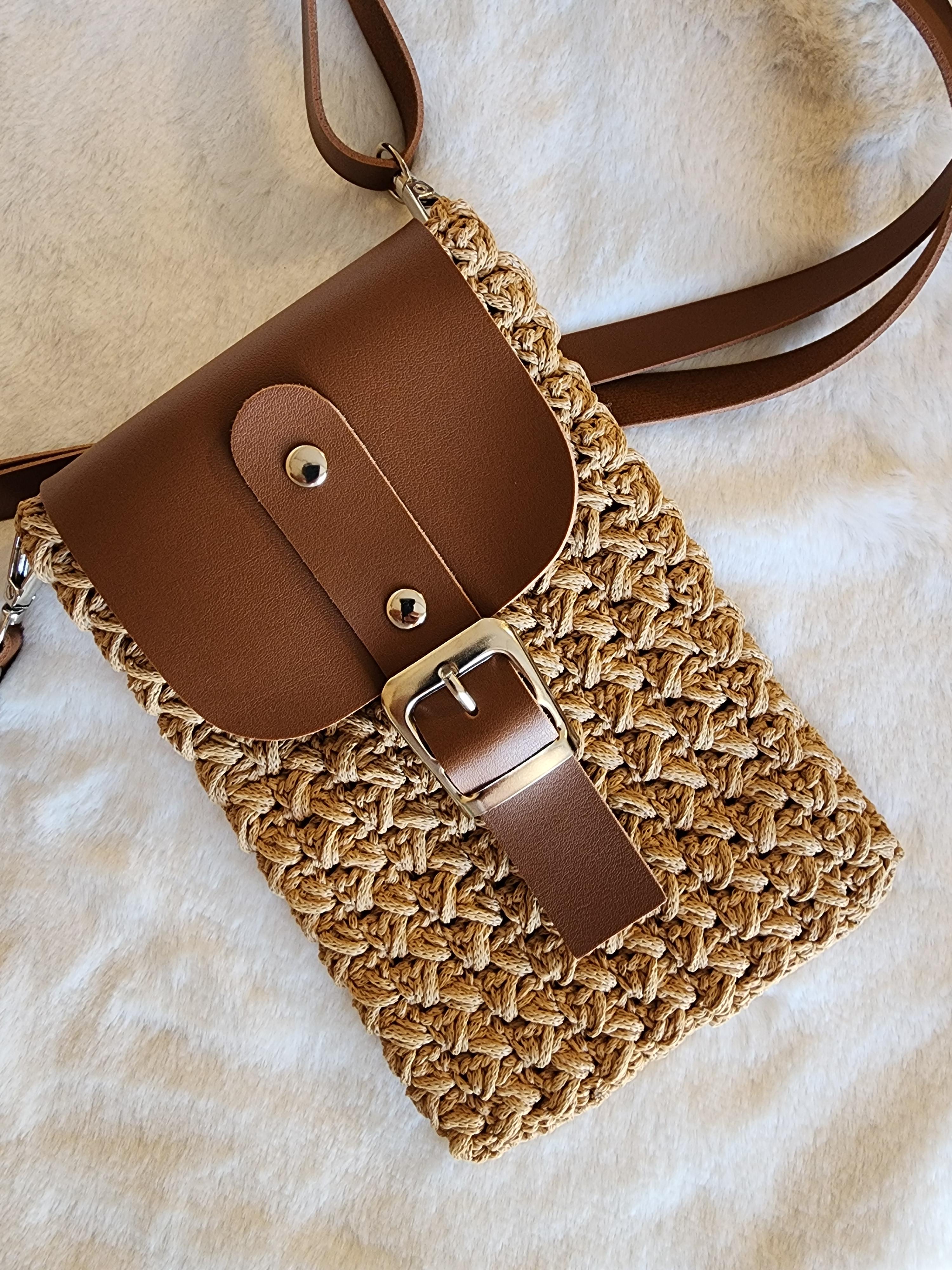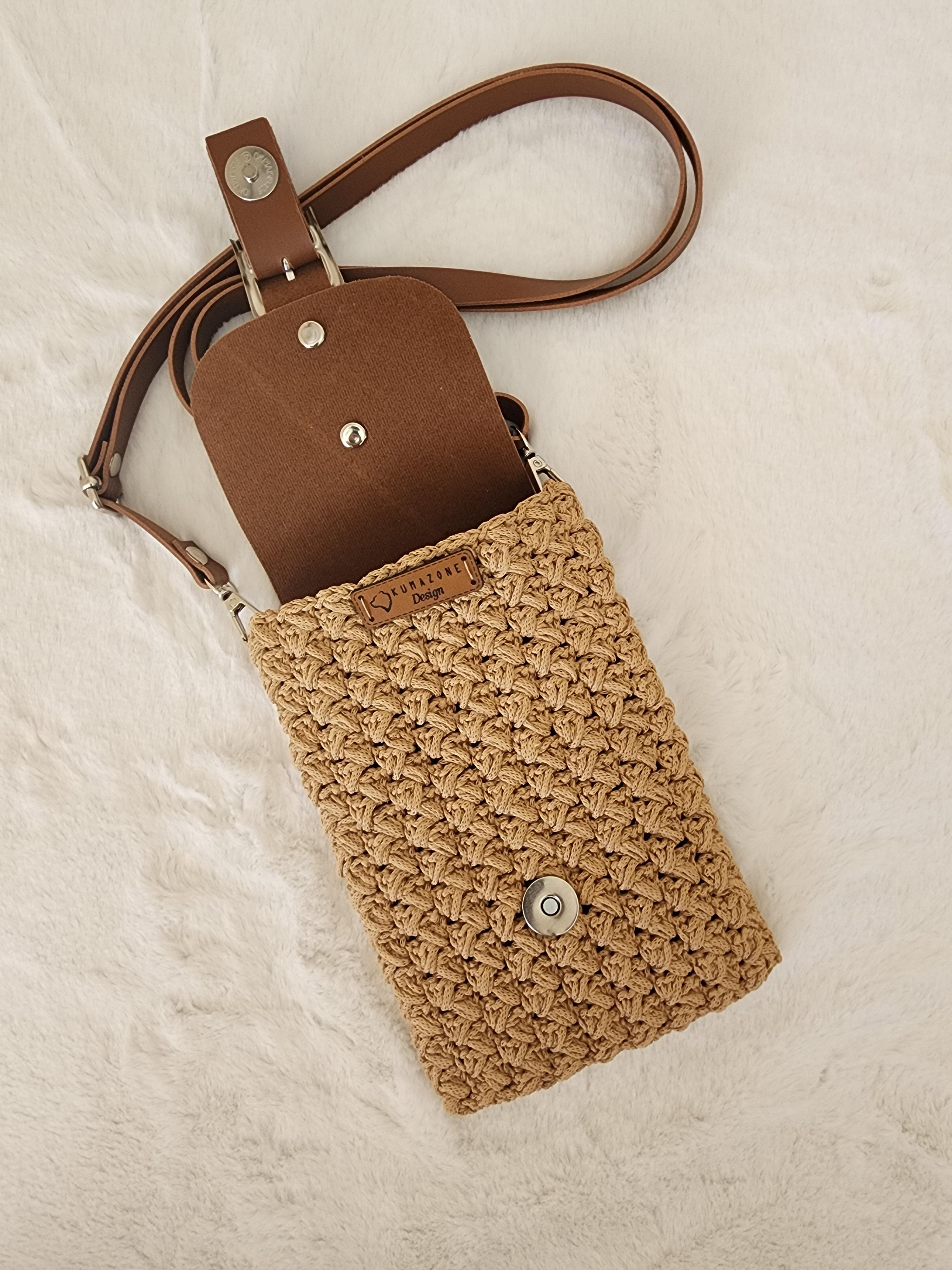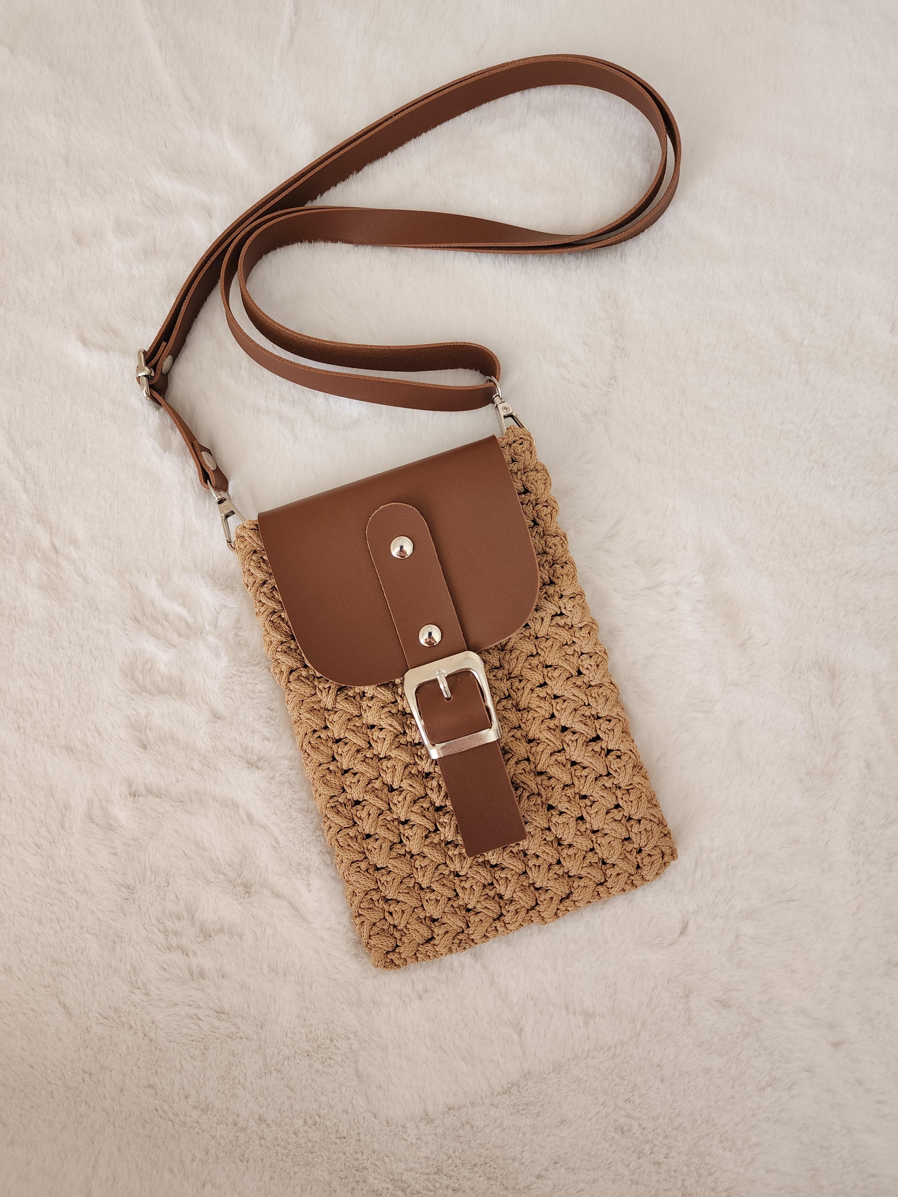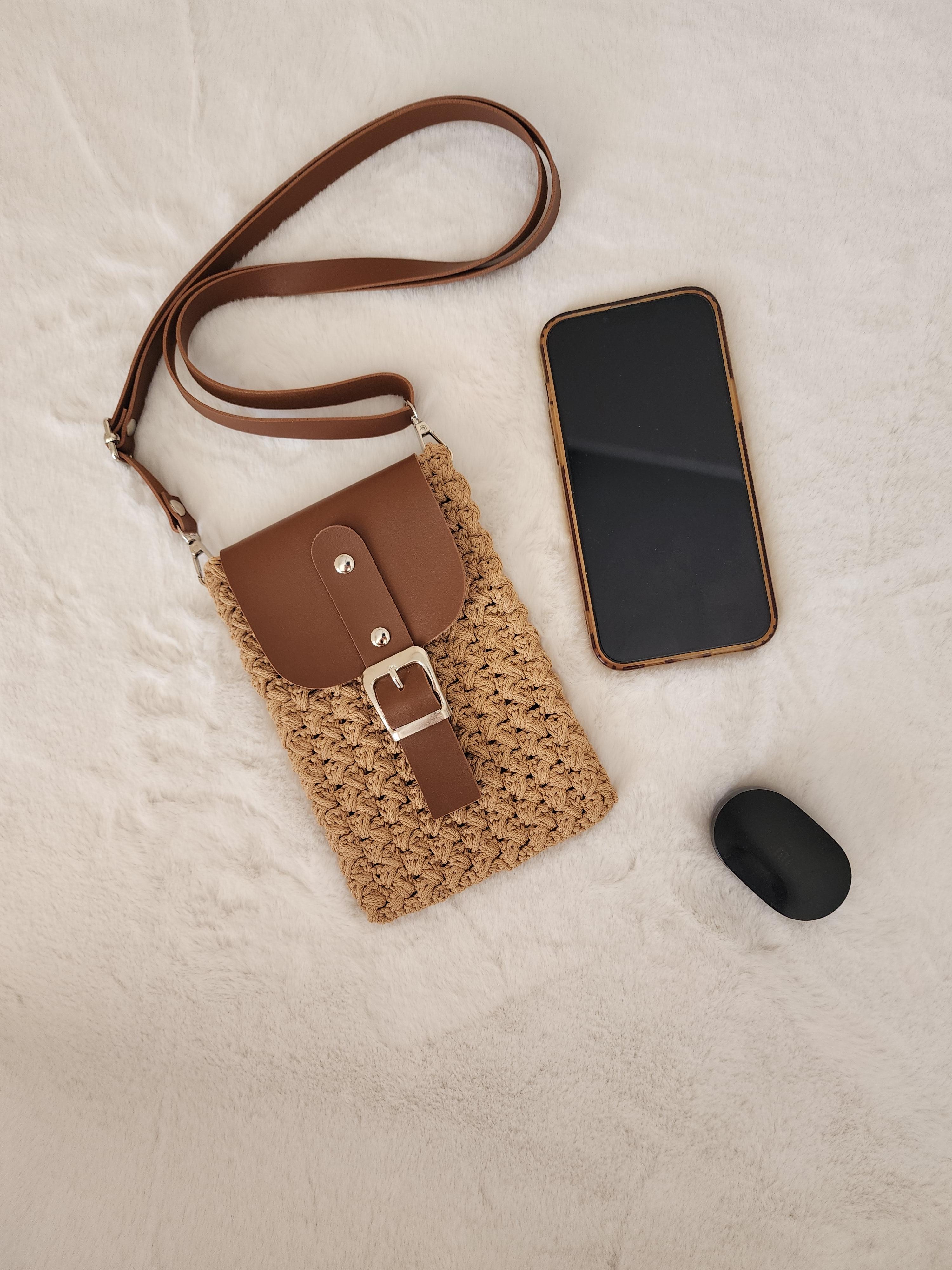 El yapımı deri kapaklı telefon çantası latte