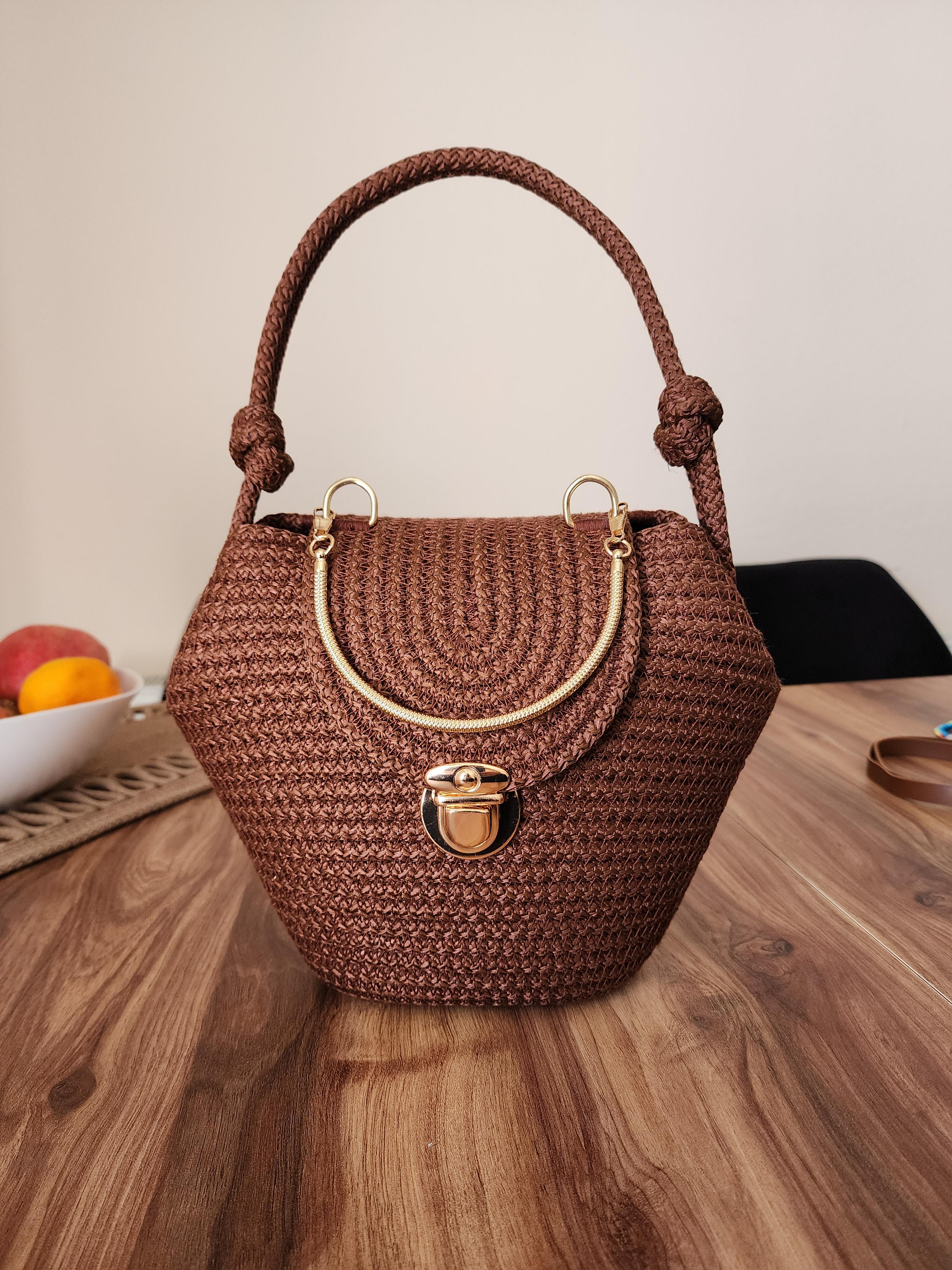 Kahverengi Metal Kulplu Çapraz Askılı Kadın Çanta
