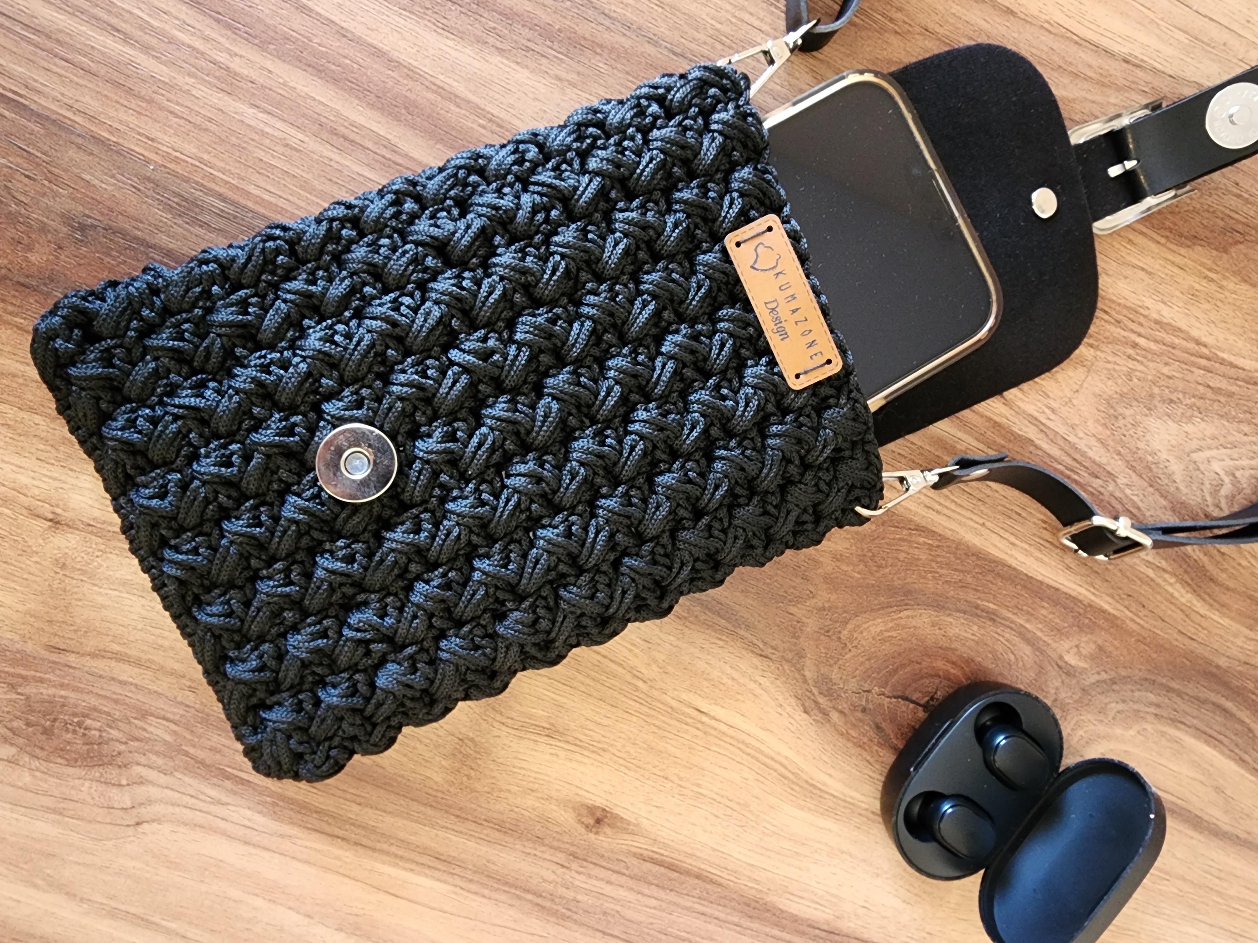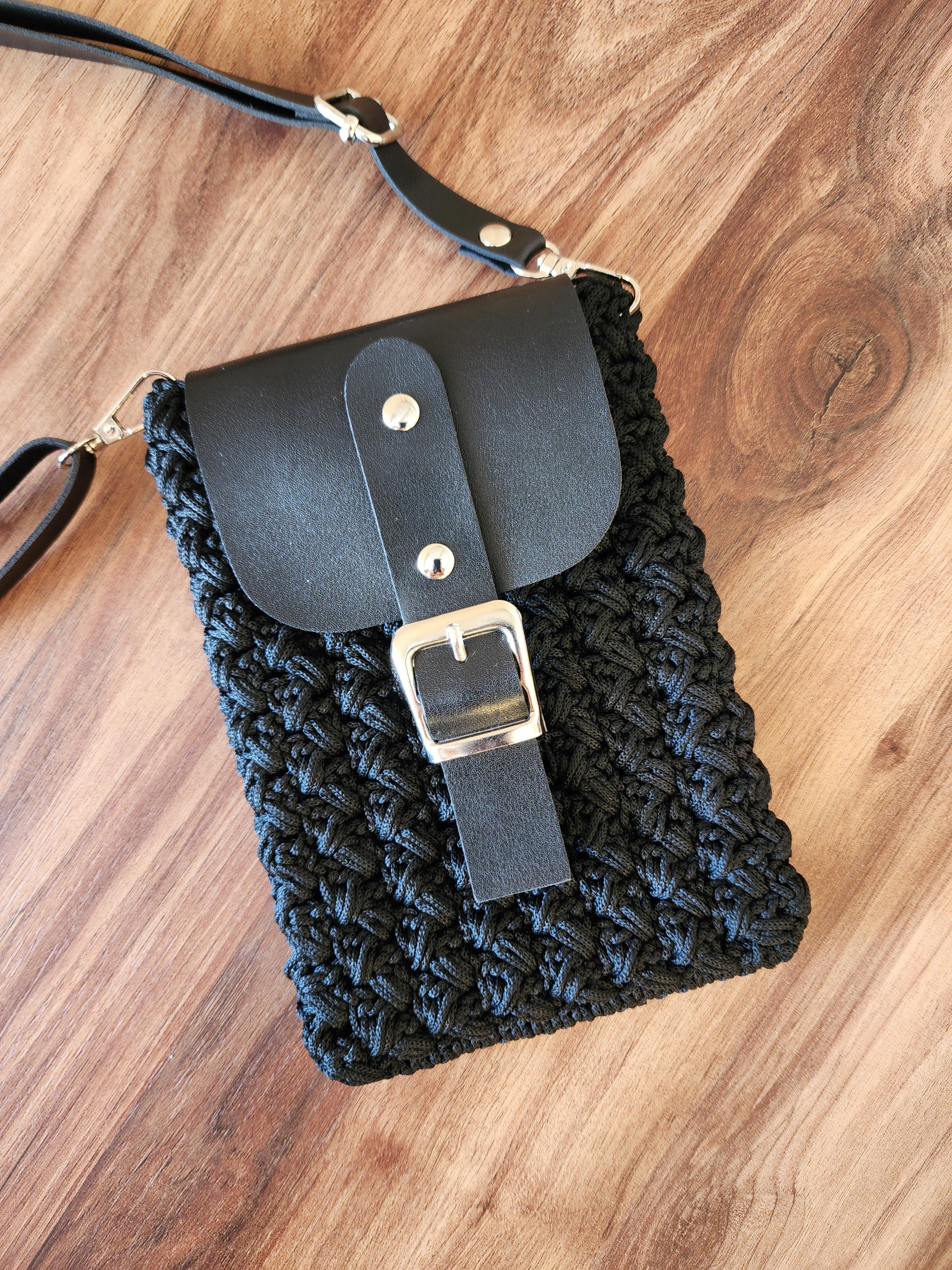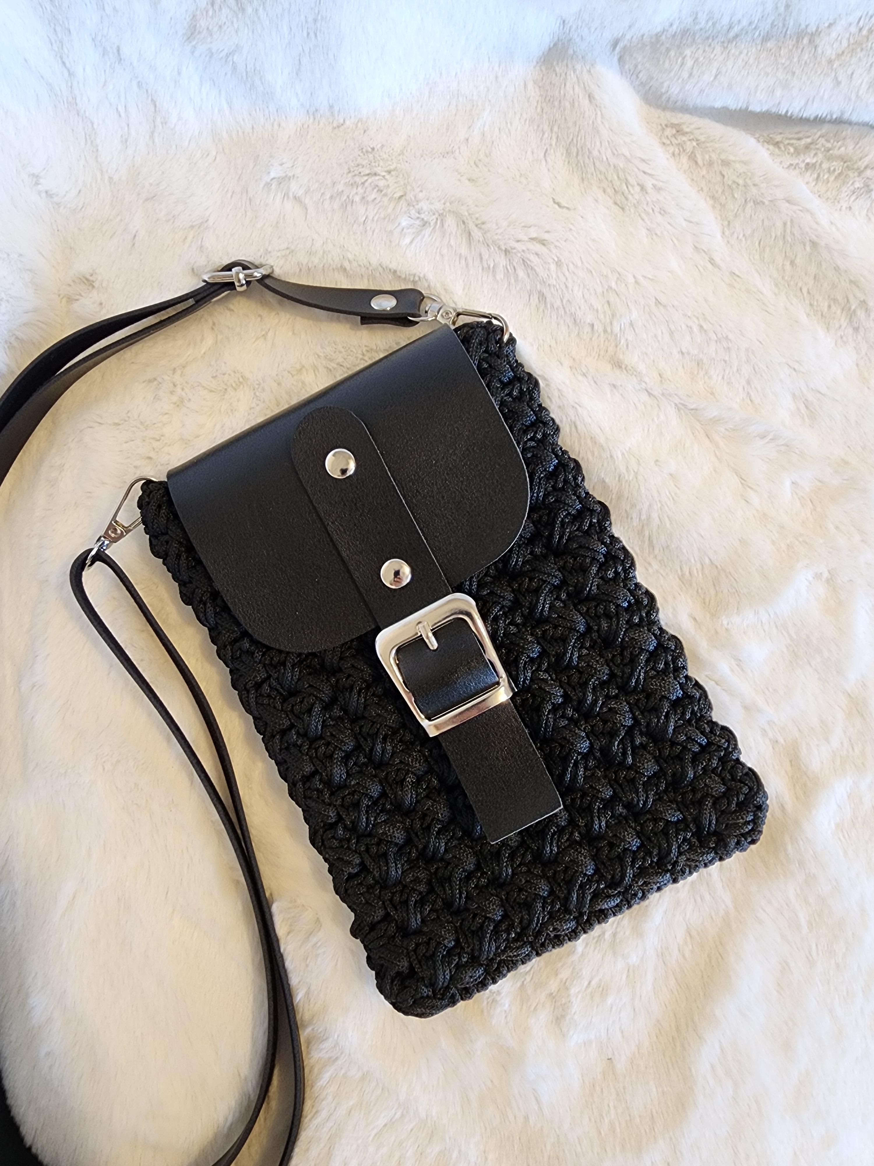 El yapımı telefon çantası siyah