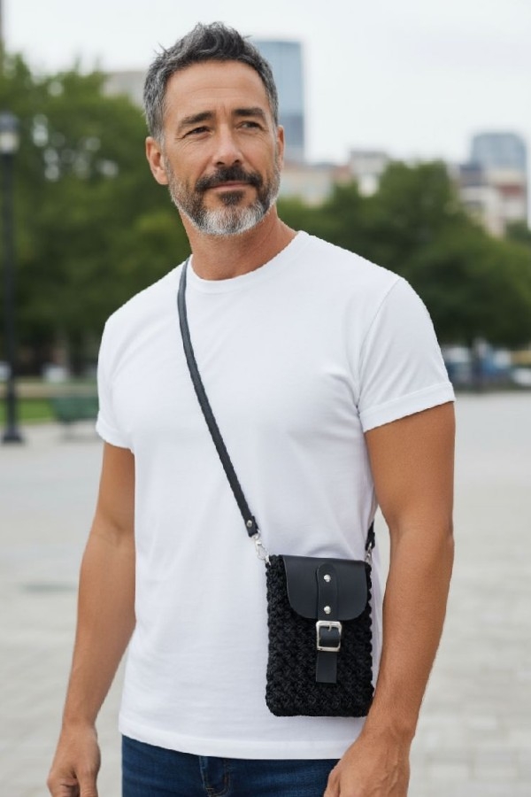 Siyah El Yapımı Telefon Çantası Unisex Model